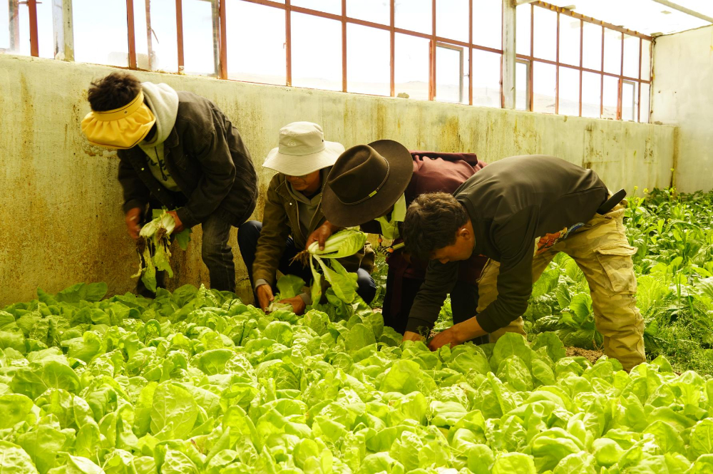自治區(qū)交通運(yùn)輸廳駐熱扎村工作隊依托蔬菜大棚為43戶群眾分發(fā)新鮮蔬菜。