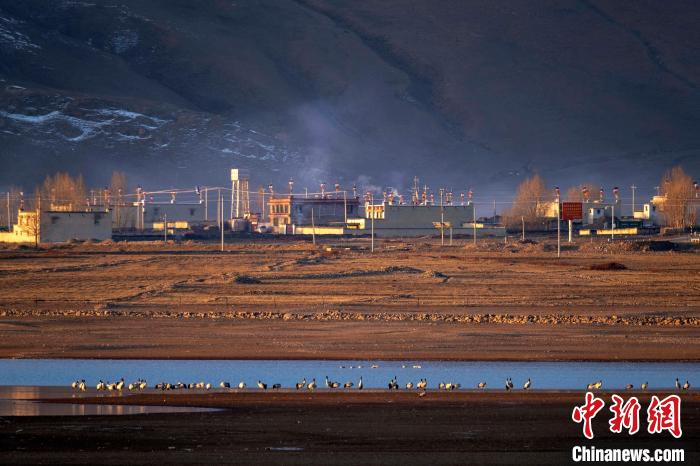 圖為拉薩林周縣境內(nèi)的村民給黑頸鶴投食。扎頓 攝
