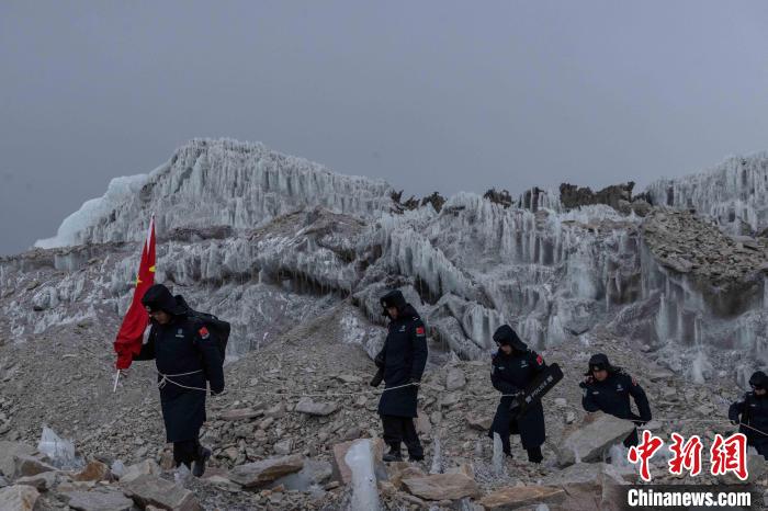 圖為普瑪江塘邊境派出所民警在海拔5600米的崗布冰川噴涂中國(guó)。郭遠(yuǎn)敬 攝