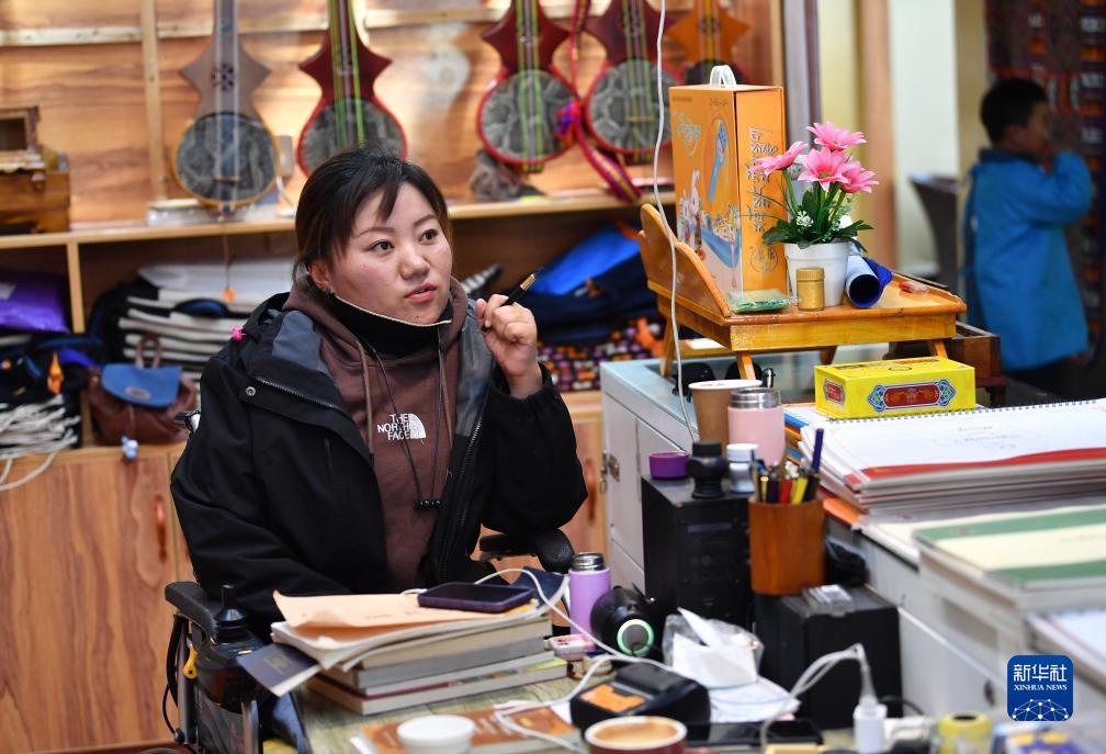 29歲的拉薩姑娘卓嘎因小兒麻痹落下殘疾,她在覺(jué)列的公司里學(xué)習(xí)了藏文書(shū)法,還成為拉薩八廓商城一個(gè)藏文書(shū)法和扎念琴體驗(yàn)班的負(fù)責(zé)人,最多的時(shí)候要為150名孩子授課?,F(xiàn)在她每月稅前收入有大約9000元。