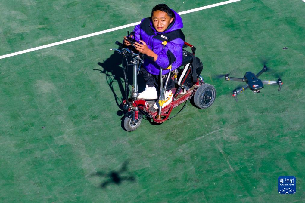 拉巴頓珠在練習(xí)操作無(wú)人機(jī)(無(wú)人機(jī)照片,12月2日攝)。新華社記者 姜帆 攝