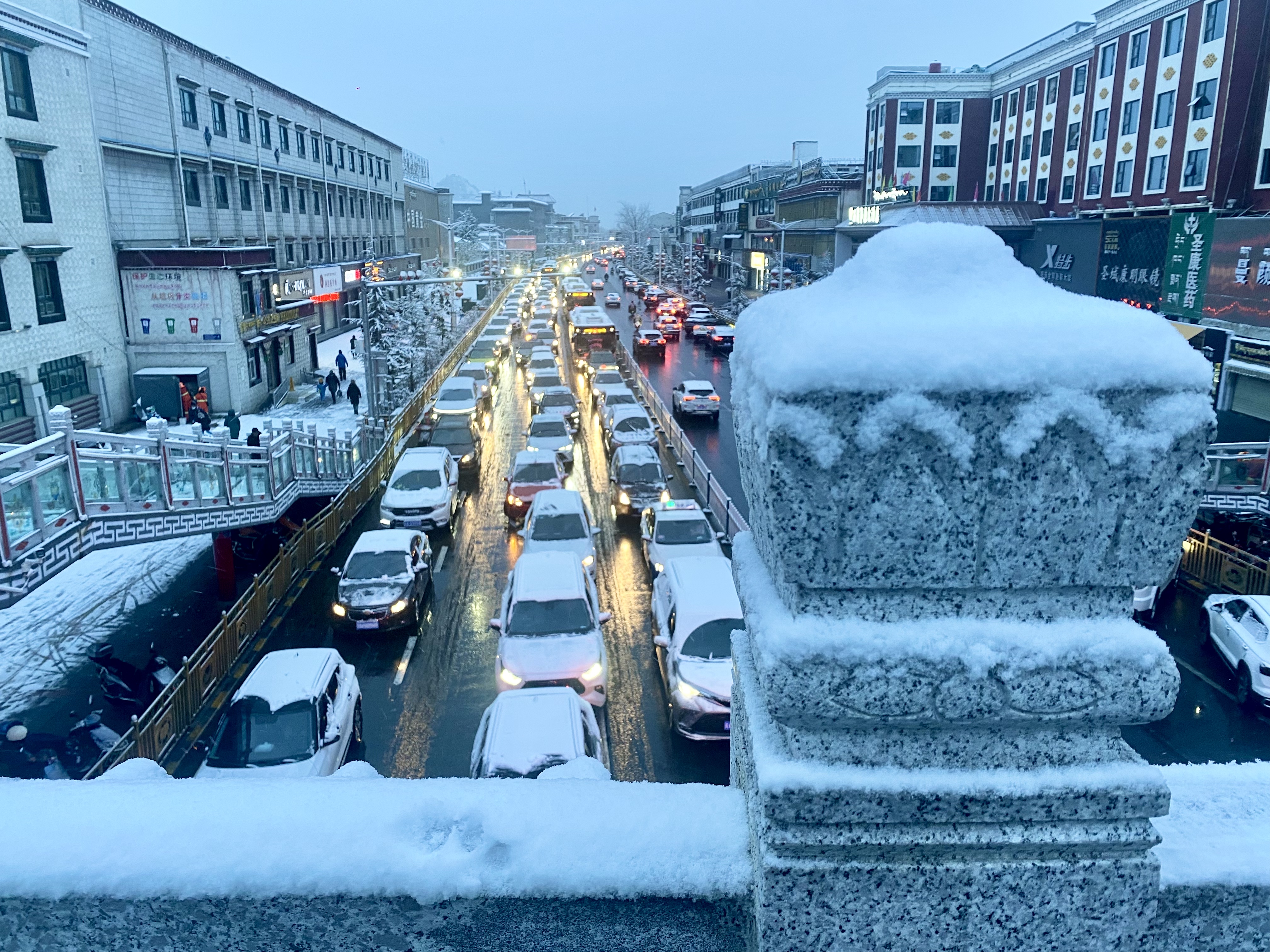 下雪的拉薩街頭