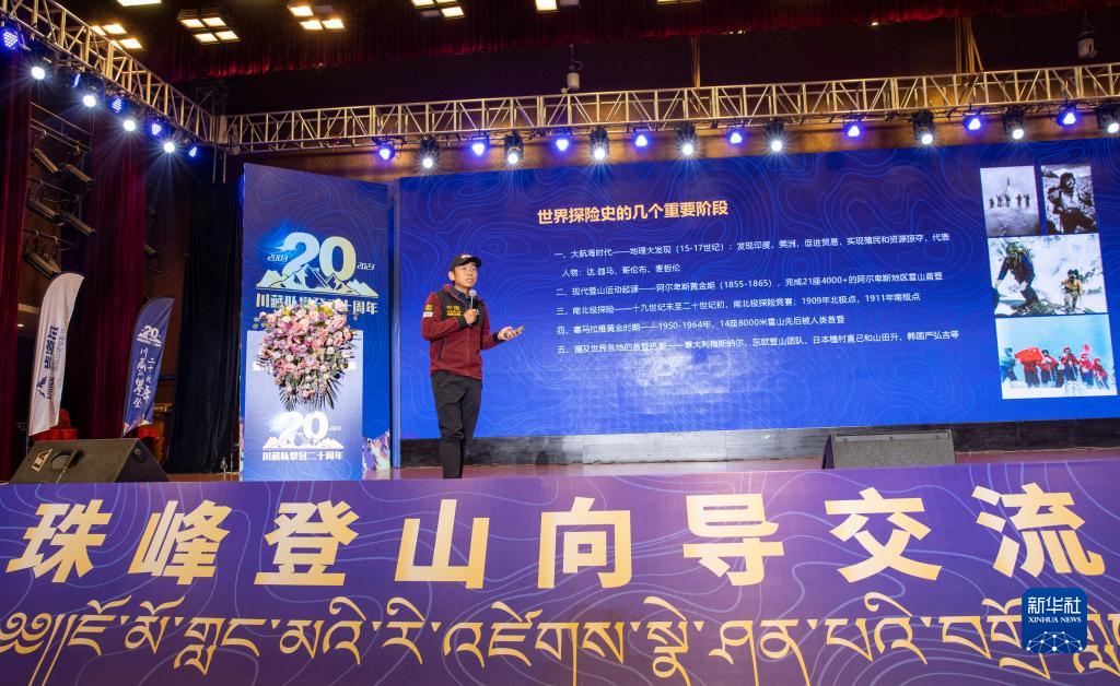 當(dāng)日,以“致敬熱愛(ài) 圓夢(mèng)巔峰”為主題的珠峰登山向?qū)Ы涣鞔髸?huì)暨川藏高山向?qū)f(xié)作隊(duì)成立20周年慶典在拉薩舉行。