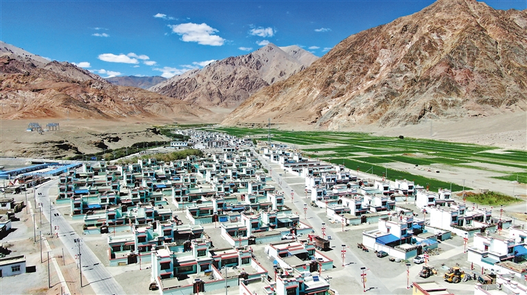 在黨和國家的關懷下,如今的日土縣多瑪鄉(xiāng)烏江村成為了邊境小康村,全村群眾通過發(fā)展合作社、苗圃等產業(yè),年人均收入達到了2萬余元,過上了富足祥和的生活。圖為鳥瞰烏江村(7月23日攝,無人機照片)。記者 洛桑旦增 攝