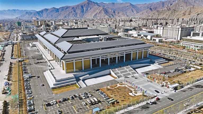 圖為俯瞰西藏大劇院(無人機(jī)照片)。新華社記者 晉美多吉 攝