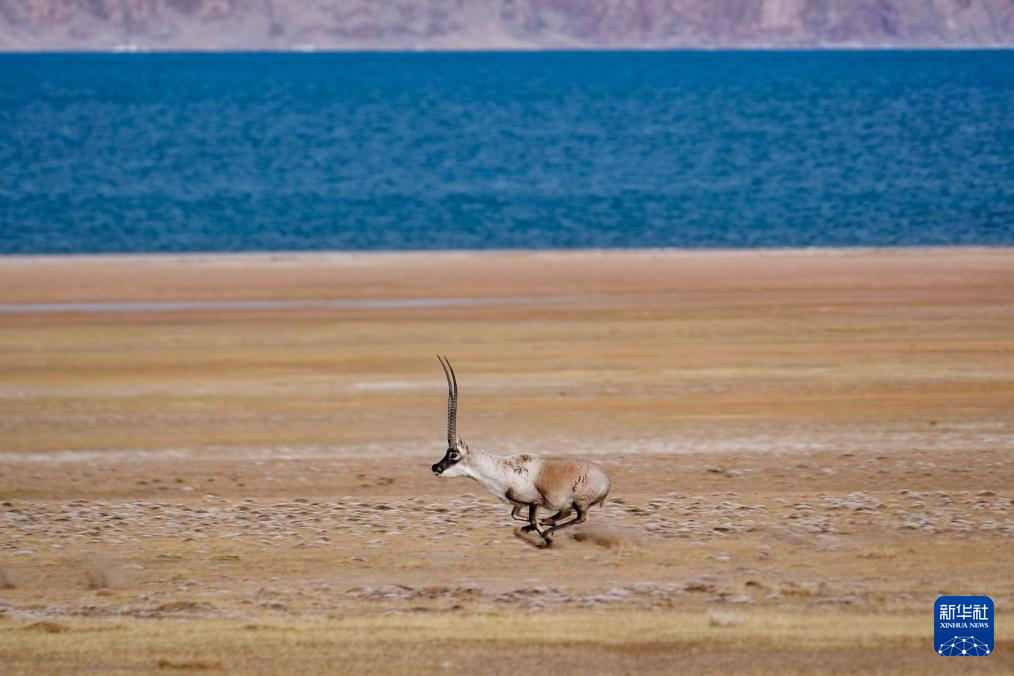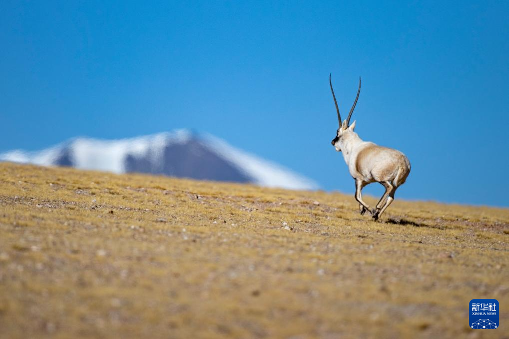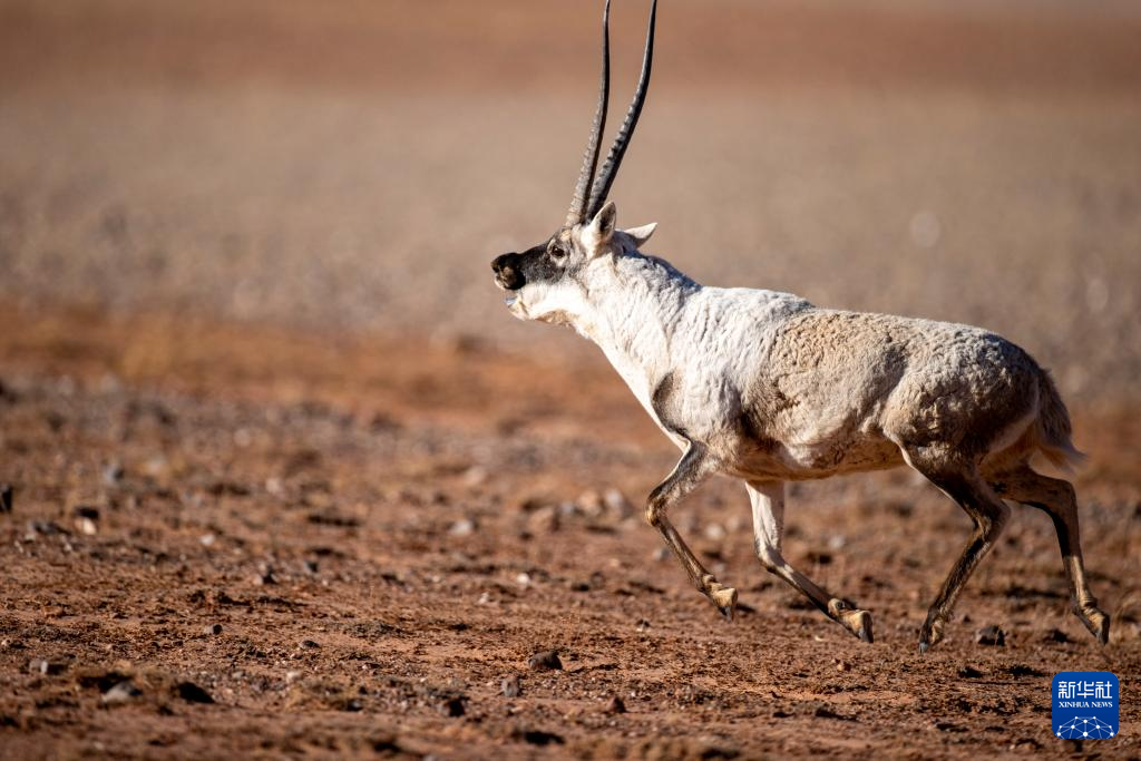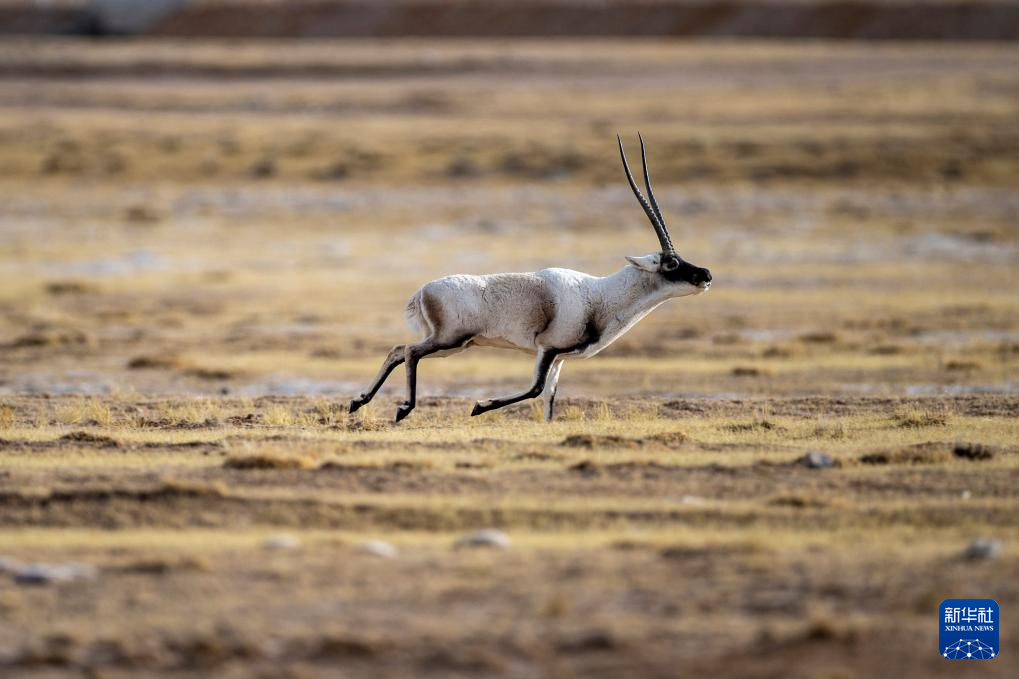 在羌塘國家級自然保護區(qū),一只雄性藏羚羊在奔跑(12月16日攝)。新華社發(fā)(旦增努布 攝)