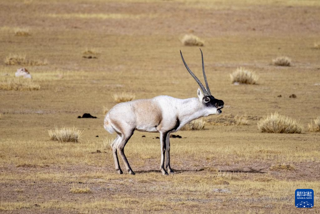 在羌塘國家級自然保護區(qū),一只發(fā)情的雄性藏羚羊在“呼喚”雌性(12月16日攝)。新華社記者 姜帆 攝