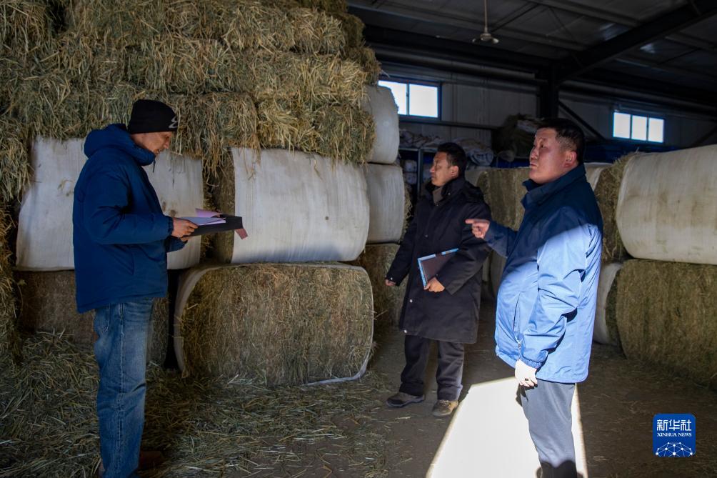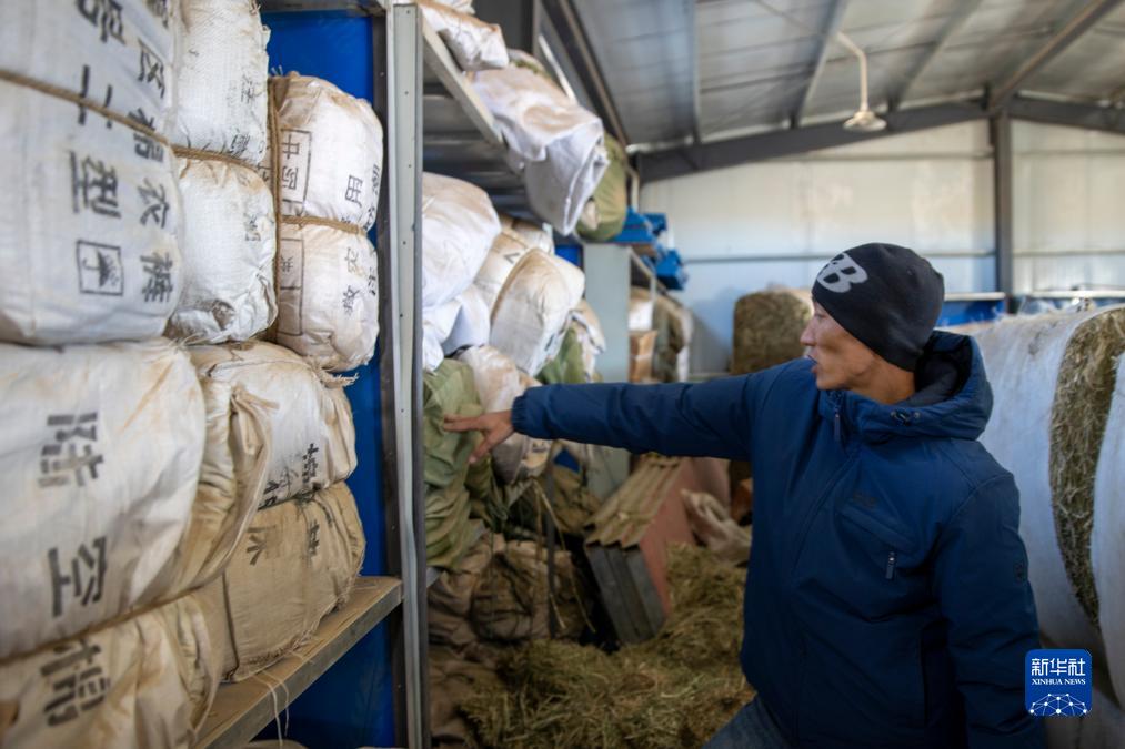 當(dāng)?shù)馗刹吭诙砭绵l(xiāng)農(nóng)牧業(yè)防抗災(zāi)物資儲備庫里盤點物資庫存。這里草料、爐子、棉服、煤炭、除雪工具等一應(yīng)俱全(12月18日攝)。新華社記者 姜帆 攝