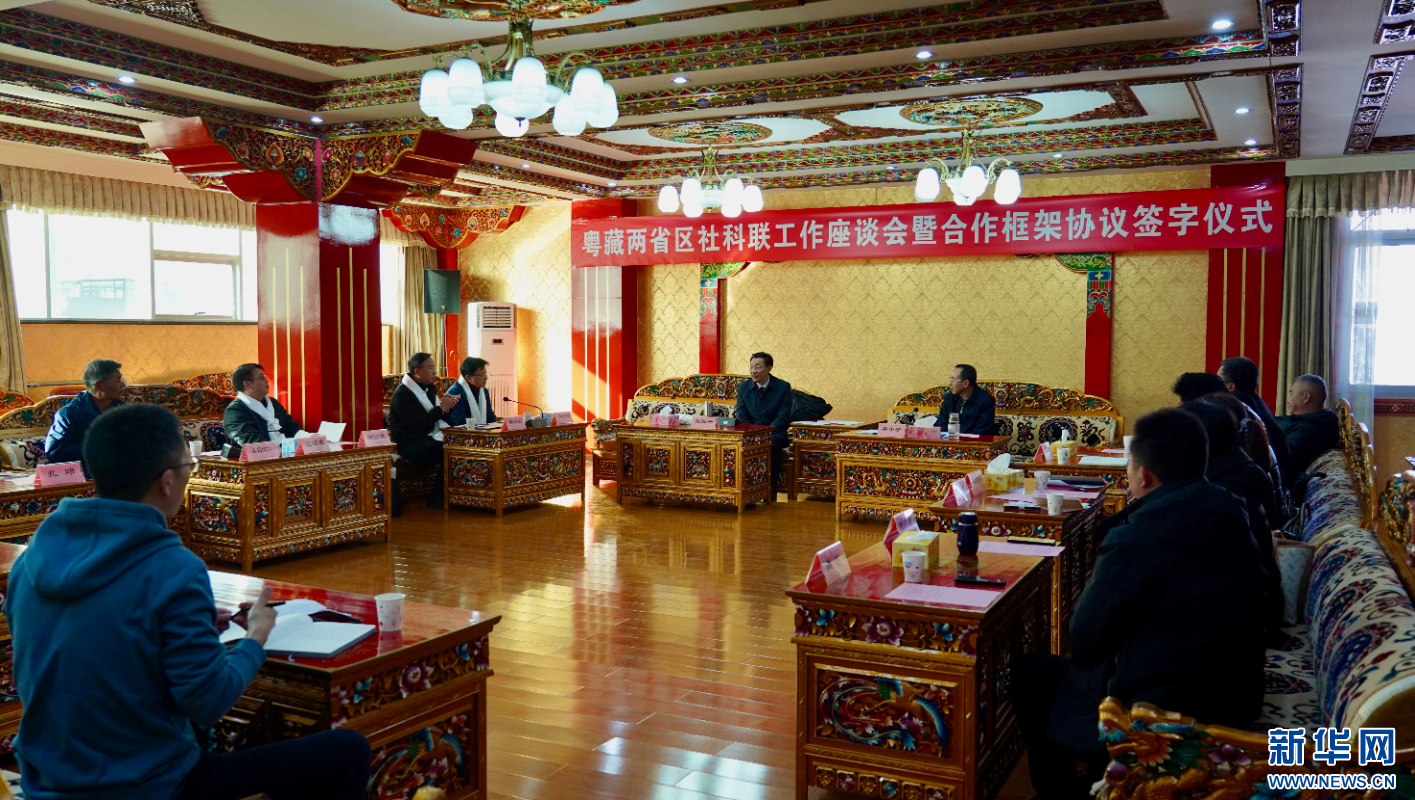 圖為12月20日粵藏兩省區(qū)社會(huì)科學(xué)界聯(lián)合會(huì)工作座談會(huì)暨合作框架協(xié)議簽字儀式現(xiàn)場(chǎng)。新華網(wǎng) 柑丹鴦琦 攝