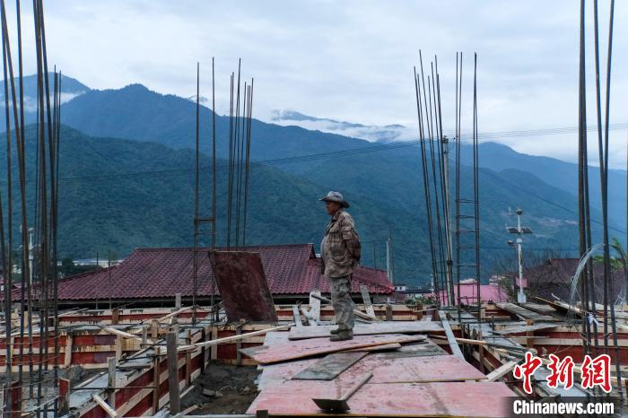 12月18日傍晚,墨脫縣門(mén)巴族村民新生在新建房屋地基上查看進(jìn)度。中新社記者 江飛波 攝
