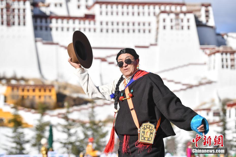 12月24日,藏裝秀表演現(xiàn)場(chǎng)。當(dāng)日,“以服飾文脈,講西藏故事”——首屆“拉薩服飾周”活動(dòng)在西藏自治區(qū)拉薩市舉行。以布達(dá)拉宮廣場(chǎng)為舞臺(tái),模特向觀(guān)眾們展示了60余套傳統(tǒng)藏民族服飾。