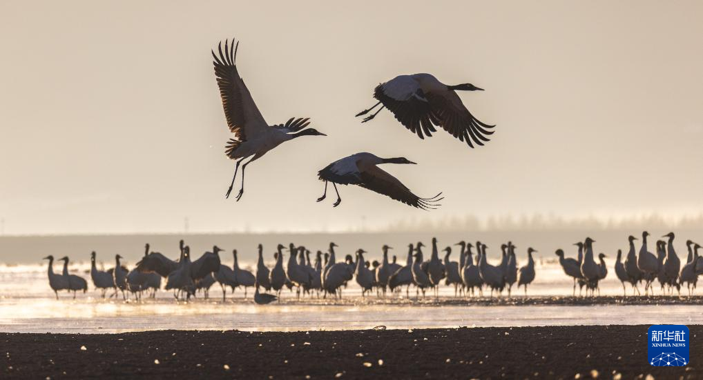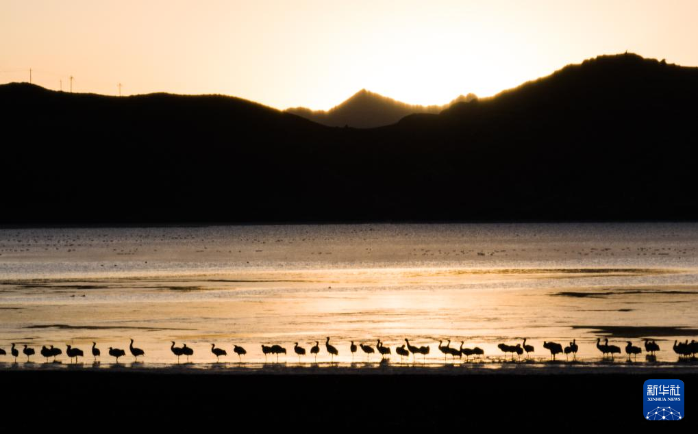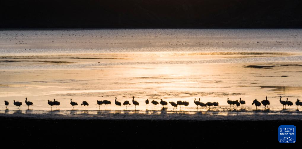 拉薩北部的林周縣平均海拔約4200米,是黑頸鶴的主要越冬地之一。清晨的陽(yáng)光灑在林周縣虎頭山水庫(kù),水面波光粼粼,鶴影婀娜多姿。