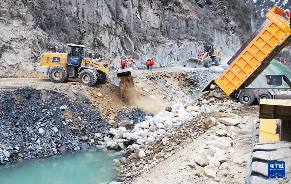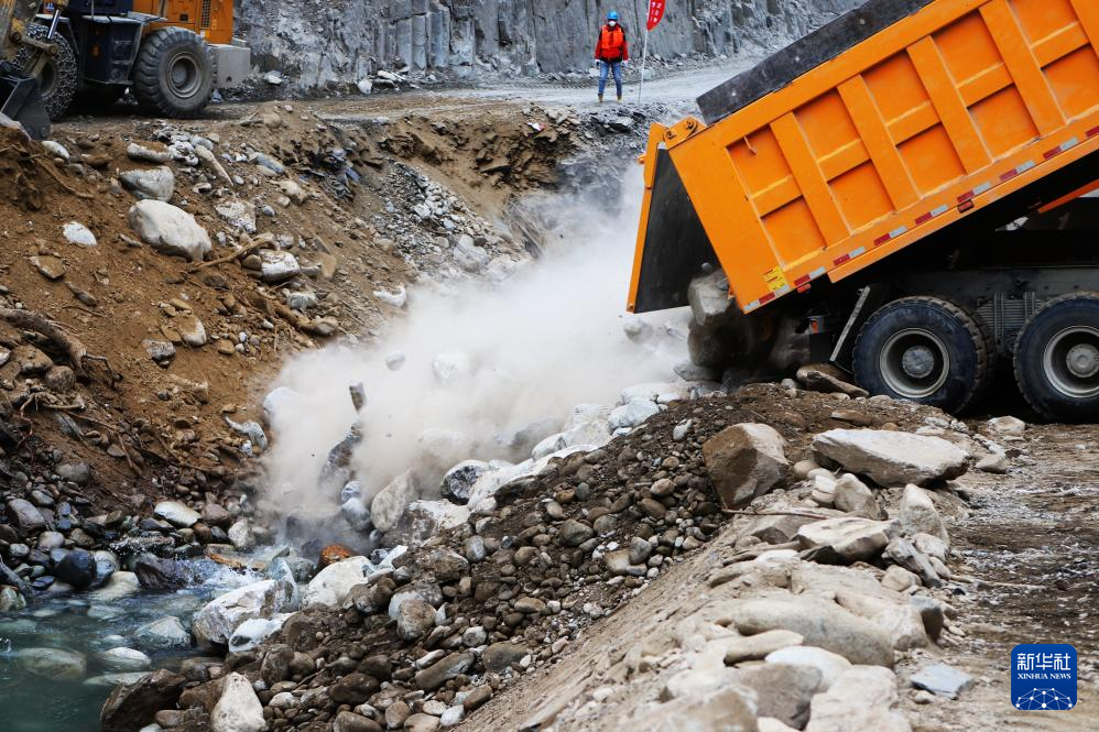 1月3日拍攝的大唐扎拉水電站項目截流施工現(xiàn)場。新華社記者 關(guān)明輝 攝