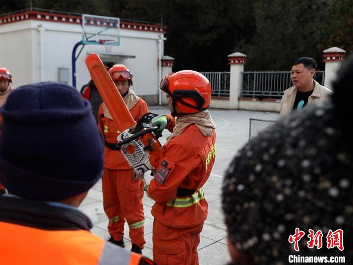 圖為消防指戰(zhàn)員強(qiáng)調(diào)注意事項。西藏林芝市森林消防支隊波密中隊供圖