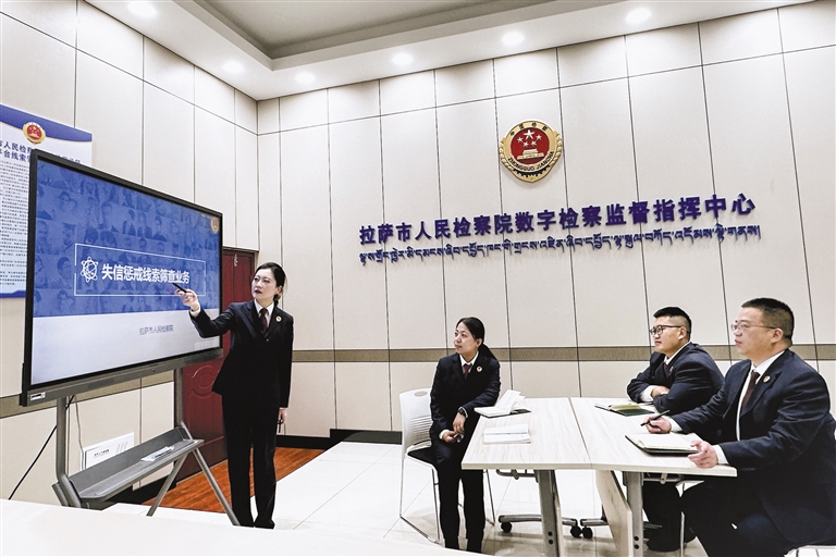 拉薩市人民檢察院檢察官通過數(shù)字檢察監(jiān)督平臺對失信懲戒不當(dāng)線索進行人工研判。