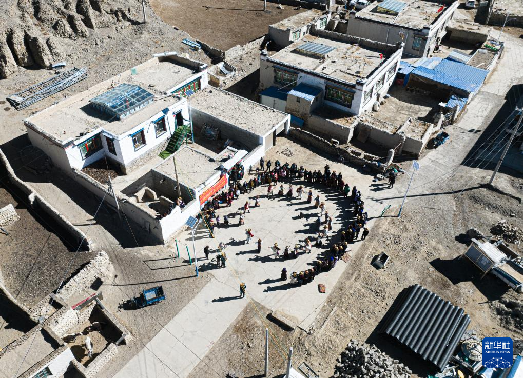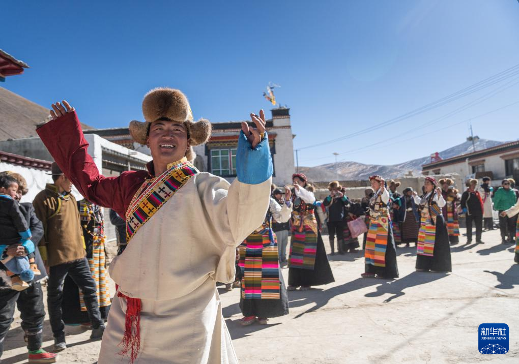 思古龍村的村民們在跳鍋莊舞(1月13日攝)。新華社發(fā)(丁增尼達(dá) 攝)