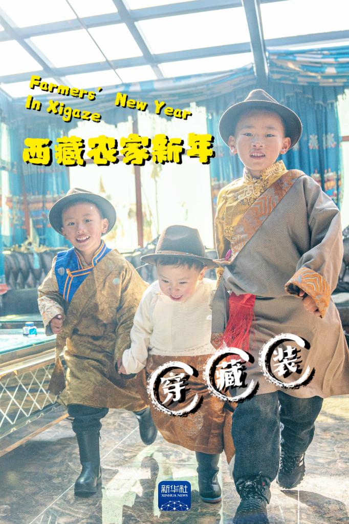孩子們穿著華麗的藏裝在新房里玩耍(1月12日攝)。