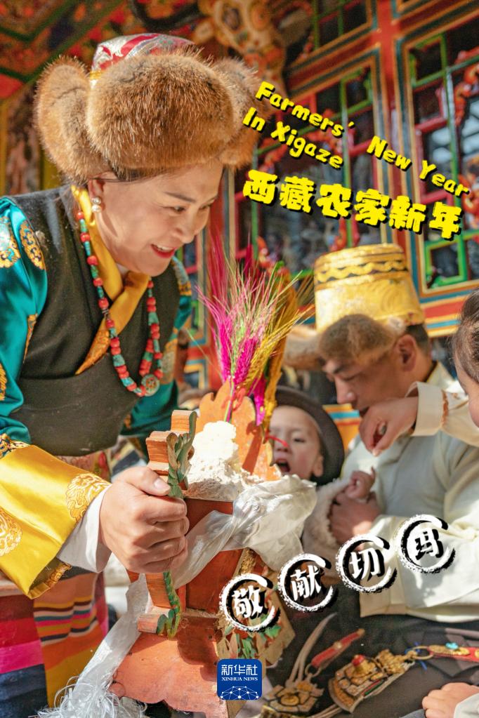 農家新年大年初一,敬獻切瑪(又稱五谷豐登斗)有祈愿來年風調雨順,五谷豐登的寓意(1月12日攝)。