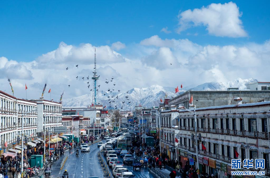 當(dāng)日是農(nóng)歷臘月初八,西藏拉薩市迎來降雪,城區(qū)銀裝素裹,雪景分外優(yōu)美,吸引了眾多市民外出拍攝游玩。