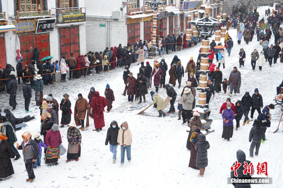 拉薩雪后信眾朝佛忙