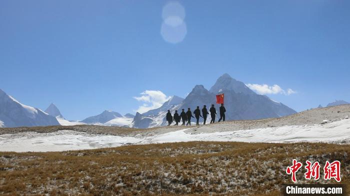 圖為西藏移民管理警察扛旗巡邏邊境。 卿光強(qiáng) 攝
