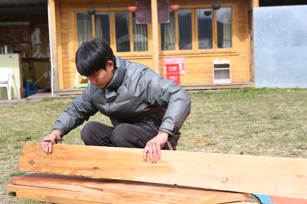 每個煙雨朦朧的清晨,都是夫妻倆最忙碌的時候。白瑪?shù)录撠?zé)民宿房間內(nèi)的保潔工作,丈夫殷合做一些手工活,制作民宿的木桌木椅等用具。夫妻倆就這么一天天地過著,忙得不亦樂乎。