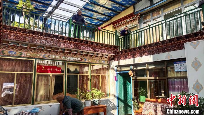 “樓上樓下都有陽光,很暖和?!?月2日,西藏網(wǎng)絡媒體新春走基層活動記者一行來到山南市瓊結縣昌嘎村,此時該村四組村民多吉在家里的二樓陽光房內準備過年用的經(jīng)幡,他的老伴則在一樓庭院內整理衣物,午后的陽光透過玻璃窗落在沙發(fā)上,坐在這里感覺不到冬的寒意,郁郁蔥蔥的綠植讓這所溫馨的居所生機勃勃。