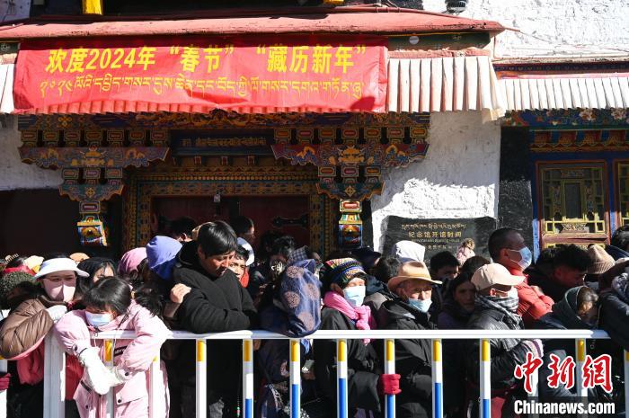 圖為2月10日,排隊(duì)進(jìn)大昭寺祈福的信眾。中新社記者 趙朗 攝