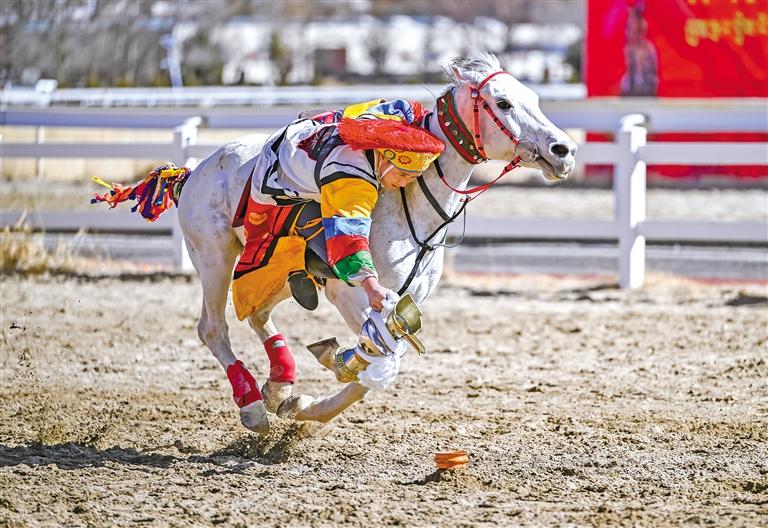 2月12日藏歷新年初三,主題為“體育大拜年,健康迎新春”的民族傳統(tǒng)馬術(shù)表演暨民族賽馬活動(dòng)在拉薩賽馬場(chǎng)舉行。