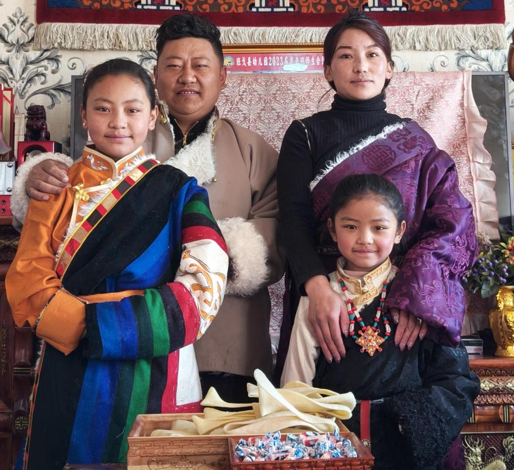 多吉熱旦一家在新房里的合影。新華社發(fā)