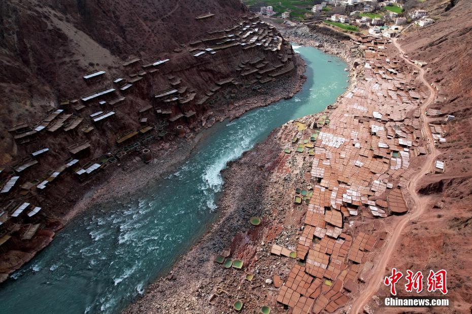 圖為2月20日,航拍西藏昌都芒康千年古鹽田。(無人機照片)中新社記者 李林 攝