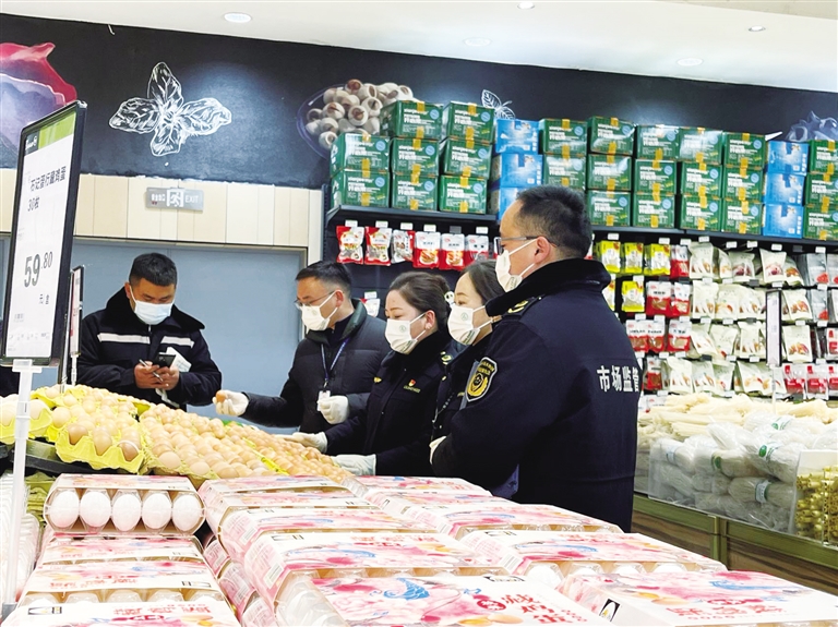 拉薩市市場監(jiān)管局工作人員檢查食品安全。
