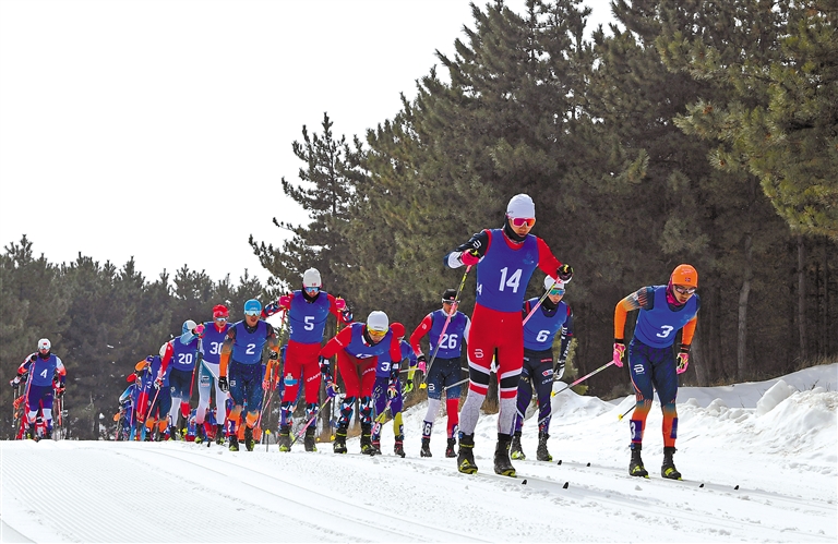 圖為公開組女子雙追逐(7.5公里傳統(tǒng)技術(shù)+7.5公里自由技術(shù))比賽現(xiàn)場。洛桑 索朗群培 攝