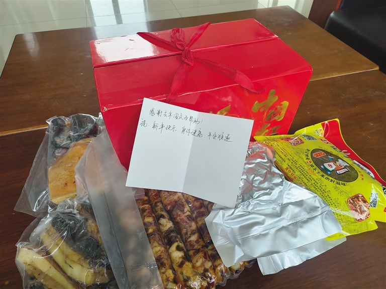 民警們熱心的幫助、暖心的話語,在曾先生心中留下了深刻的印象。雖然已經(jīng)過去了幾個月,但每每想起那次相遇,他的心頭總是涌起一股暖流。帶著這份感激和惦念,曾先生特意為孔瑪邊境派出所的民警們寄去了家鄉(xiāng)特產(chǎn)臘肉和香腸,還有一張寫滿祝福的卡片。