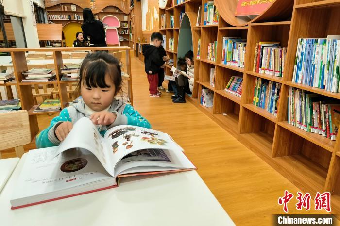 2023年12月22日晚,一位兒童在墨脫縣蓮花書(shū)屋翻閱畫(huà)冊(cè),據(jù)悉該書(shū)屋有圖書(shū)上萬(wàn)冊(cè),是西藏最大的縣級(jí)書(shū)屋。中新社記者 江飛波 攝