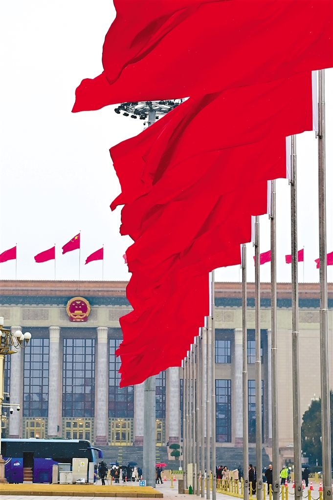 圖為全國人大代表聆聽政府工作報告后,滿懷信心走出人民大會堂。記者 旦增西旦 攝