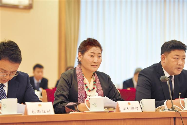 全國人大代表白瑪措在會(huì)上發(fā)言。 旦增西旦 攝