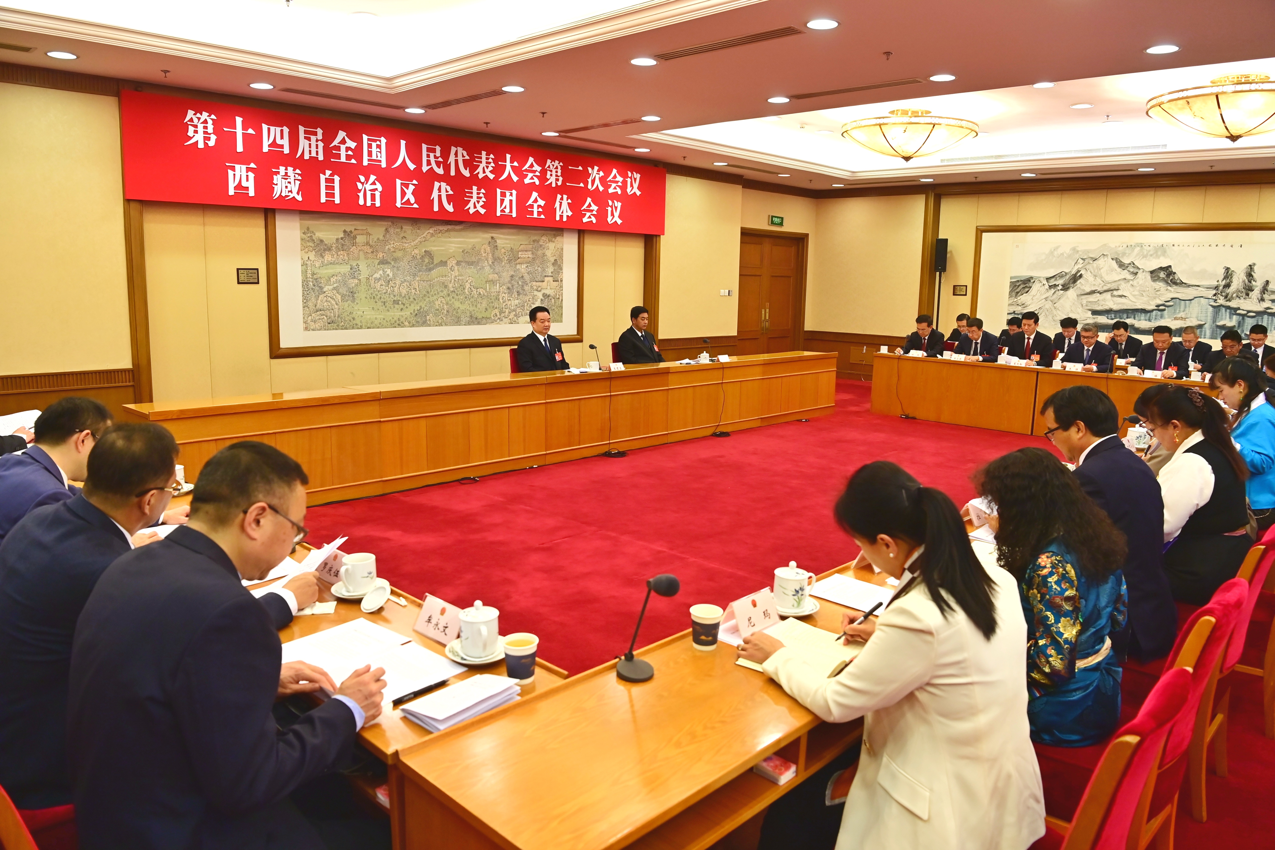 3月10日,西藏代表團(tuán)舉行全體會(huì)議,繼續(xù)審議全國(guó)人大常委會(huì)工作報(bào)告、最高人民法院工作報(bào)告、最高人民檢察院工作報(bào)告;審議關(guān)于政府工作報(bào)告、年度計(jì)劃、年度預(yù)算的決議草案。這是會(huì)議現(xiàn)場(chǎng)。記者 旦增西旦 攝