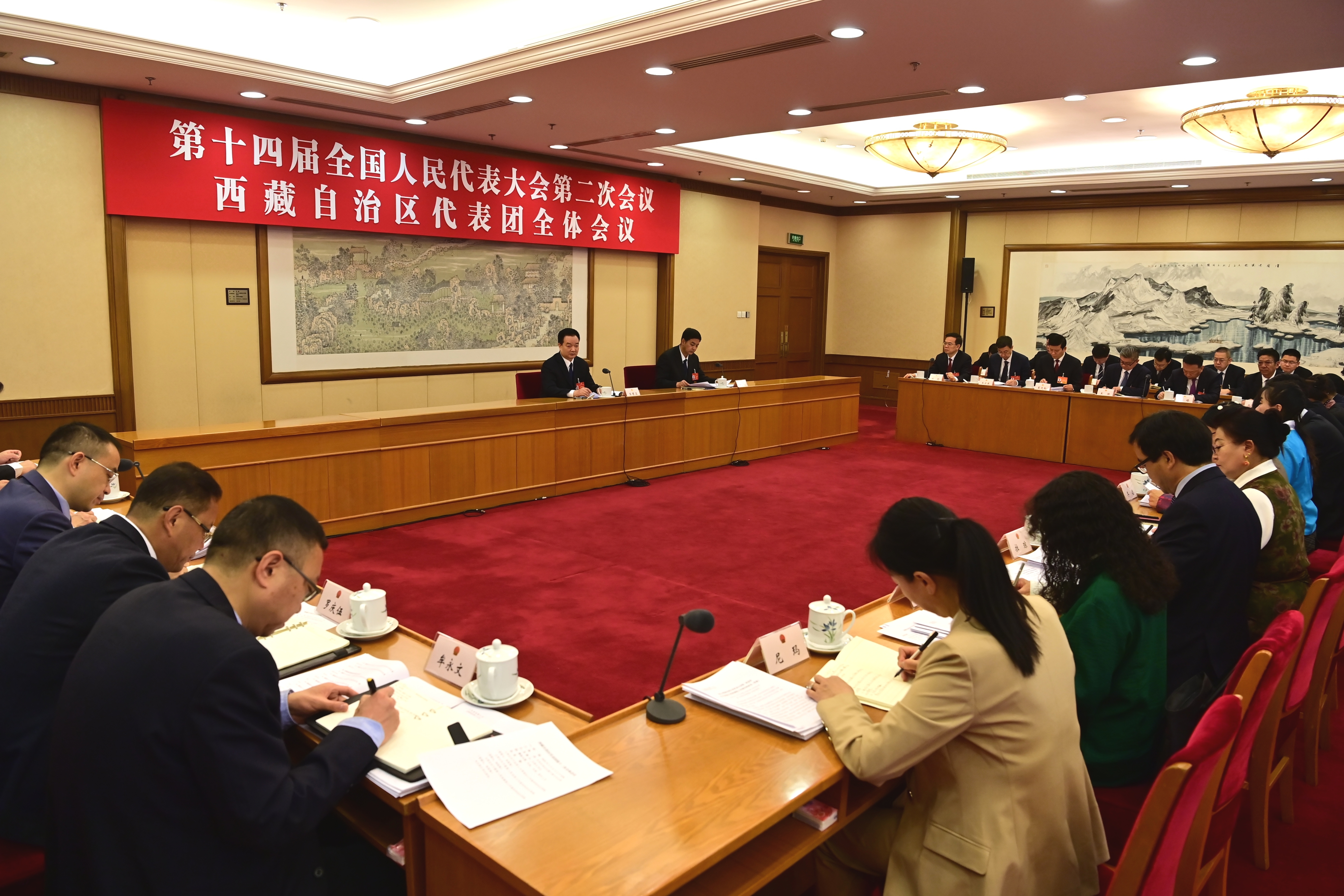 3月11日,西藏代表團舉行全體會議,審議關于全國人大常委會工作報告、最高人民法院工作報告、最高人民檢察院工作報告的決議草案。