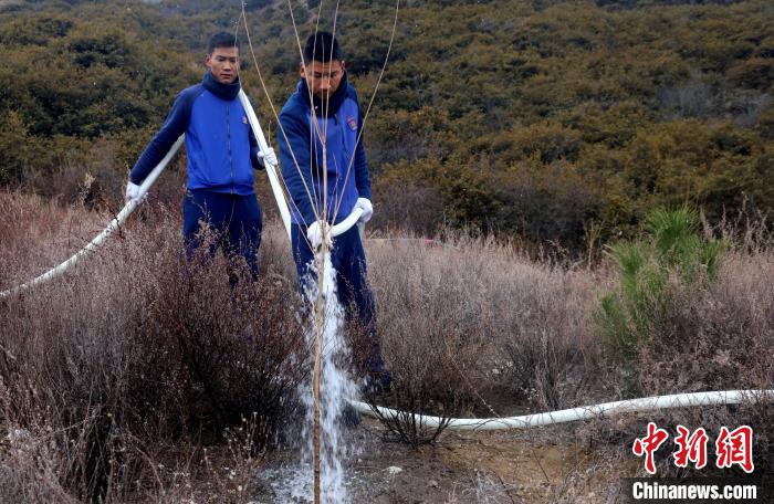 圖為林芝市巴宜區(qū)森林消防中隊澆水灌溉。巴宜區(qū)森林消防中隊供圖