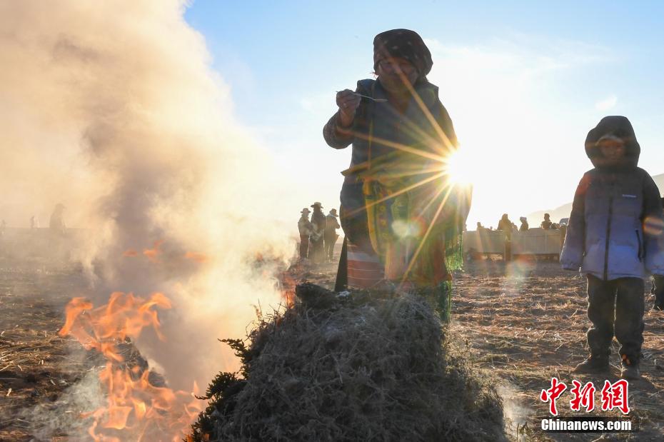 圖為拉薩市林周縣春堆村村民在春耕儀式前煨桑。貢嘎來松 攝