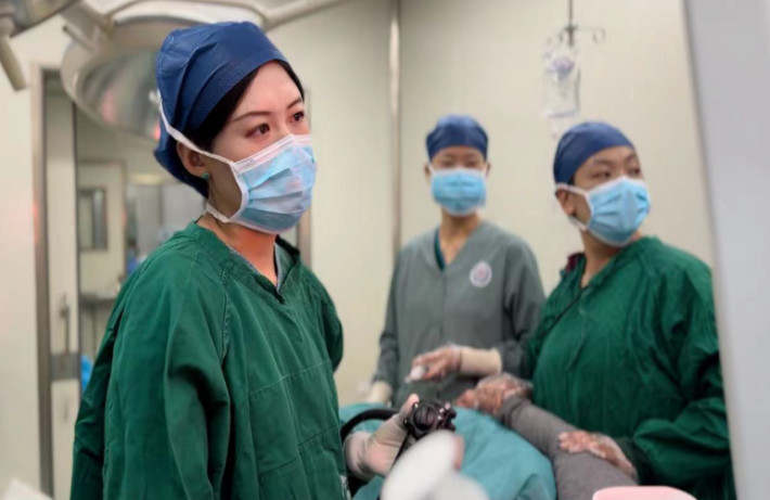 圖為趙曉蕾醫(yī)生為患者進行內(nèi)鏡下治療