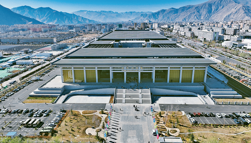 2023年12月15日,西藏大劇院開(kāi)臺(tái)演出活動(dòng)舉行,西藏文化新地標(biāo)西藏大劇院正式啟用。圖為空中俯瞰西藏大劇院(無(wú)人機(jī)照片)。 新華社記者 晉美多吉/攝