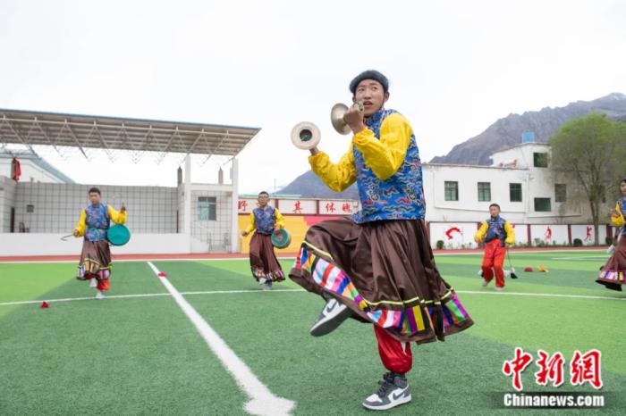 西藏加查縣中學(xué)學(xué)生在練習(xí)非遺昌果卓舞。貢嘎來松 攝