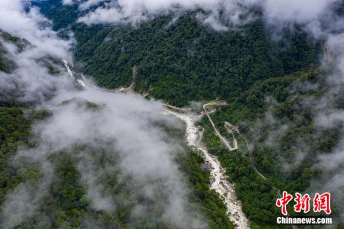 航拍首條進(jìn)入西藏墨脫的公路扎墨公路。何蓬磊 攝