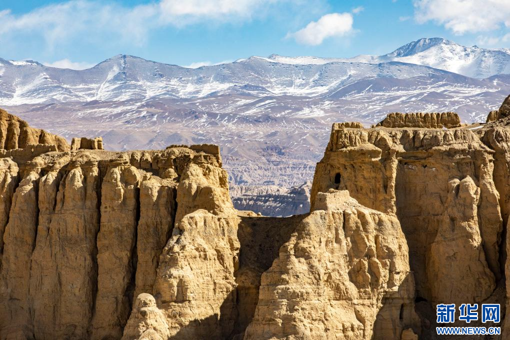 達(dá)巴遺址位于西藏阿里地區(qū)札達(dá)縣境內(nèi),其主要建筑分布在兩座山脊之上,整個(gè)遺址共有洞穴200余處,且有獨(dú)立的碉樓、寺廟建筑遺跡、居民窯洞等建筑,在白雪的映襯下,顯得格外雄渾而神秘。