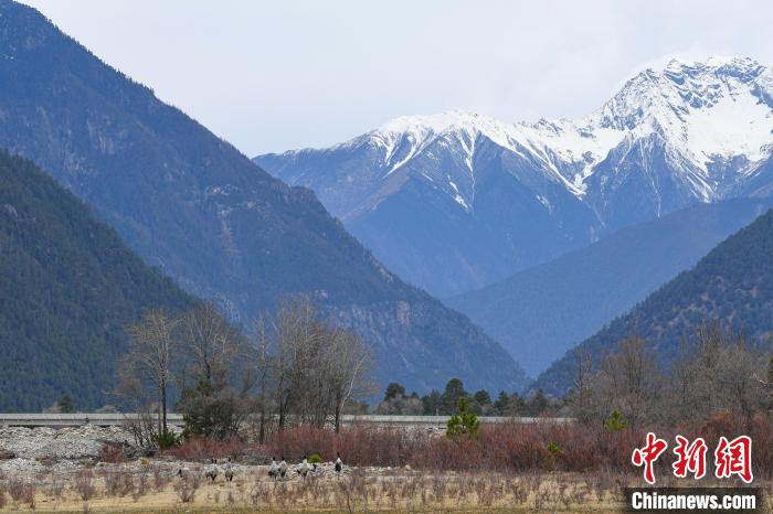 圖為拉薩至林芝公路前飛翔的黑頸鶴。益西旦增 攝