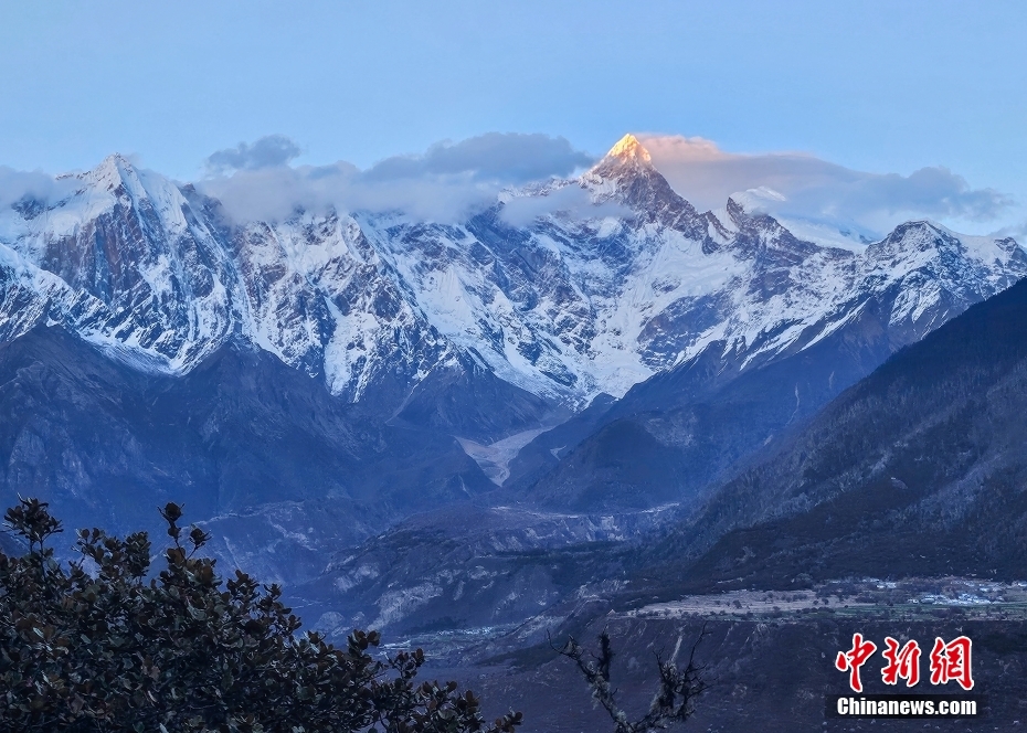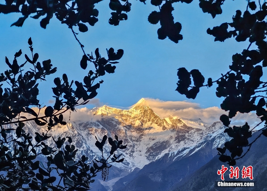 圖為南迦巴瓦峰顯露出“日照金山”的美景。中新社記者 貢嘎來松 攝
