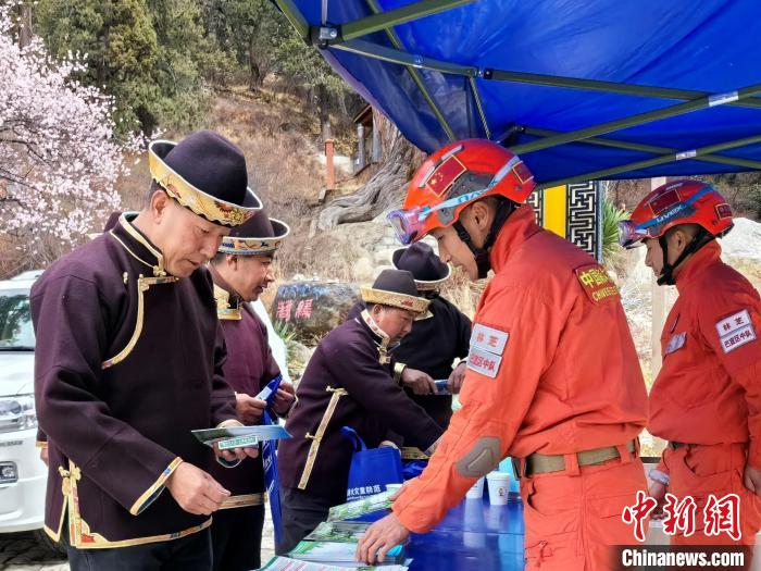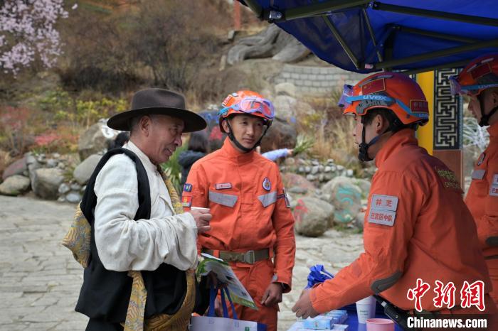 圖為消防員正在開展防火宣傳知識普及。西繞拉翁 攝