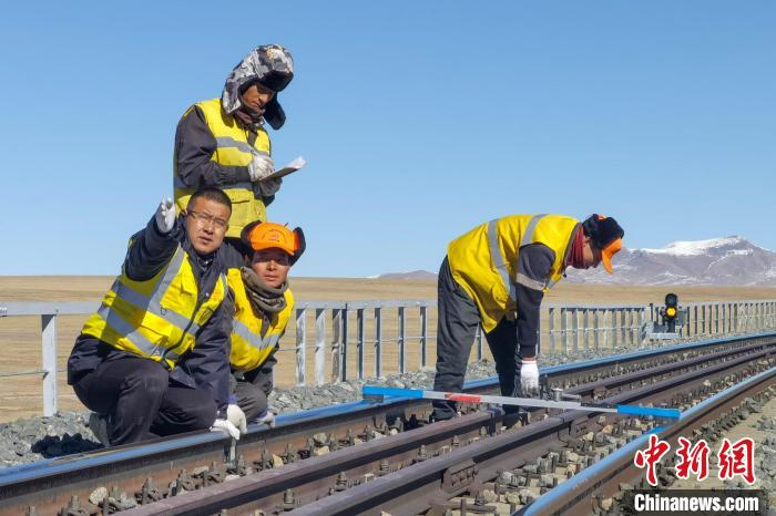 圖為西藏工匠高錢勝(左一)和團隊在青藏鐵路凍土區(qū)段進行路基病害整治和檢查。受訪者供圖